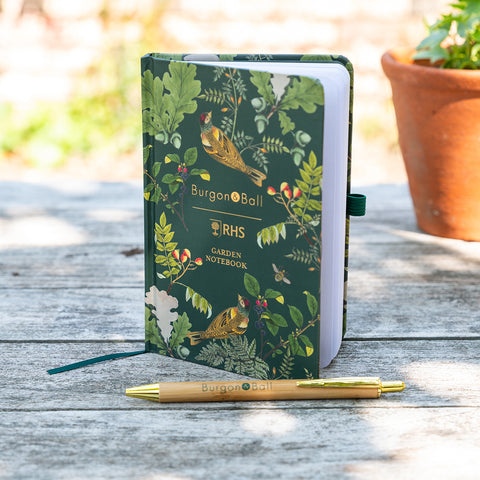 This elegant notebook has a premium feel, with hard covers, gold foil detail on the cover, and satin ribbon bookmark. Slightly larger than A6, there’s plenty of room for notes, but not too big to take with you as you’re out and about. It comes complete with a push-action ball pen with bamboo barrel and Burgon & Ball logo.