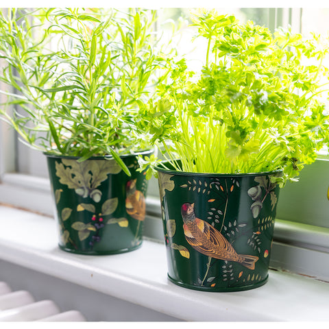 The two pots are made from galvanized steel with a durable powder coating and finished with the gorgeous ‘Woodland Wonders’ pattern. Ideal for supermarket herbs or for growing your own, these pots bring a beautiful touch of elegance to your kitchen. The set is supplied wrapped in an easily recyclable cardboard sleeve.